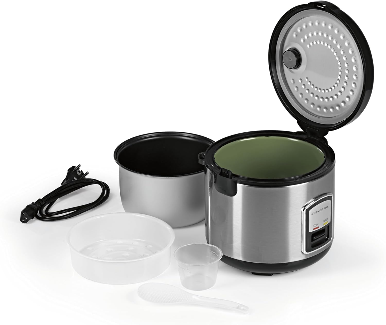 GOURMETmaxx Kompakt-Reiskocher është zgjidhja ideale për përgatitjen e orizit perfekt dhe gatimeve të shëndetshme në mënyrë të thjeshtë dhe të shpejtë. Falë funksionit të gatimit me avull, mund të gatuani njëkohësisht orizin dhe perimet, duke ruajtur vlerat ushqyese dhe shijen natyrale të ushqimit.