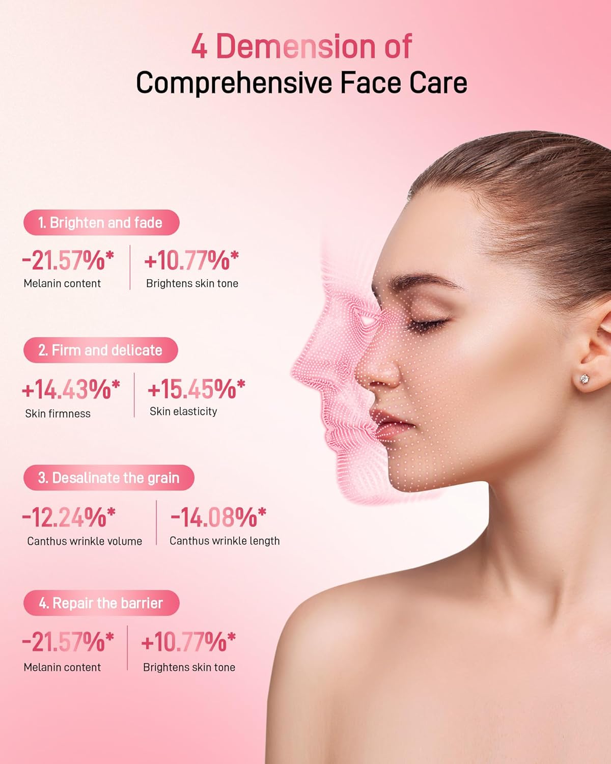 Maska përdor drita LED me gjatësi vale të ndryshme që depërtojnë në shtresat e lëkurës dhe stimulojnë rigjenerimin qelizor dhe prodhimin e kolagjenit. Kjo ndihmon në përmirësimin e elasticitetit, tonit dhe strukturës së lëkurës.